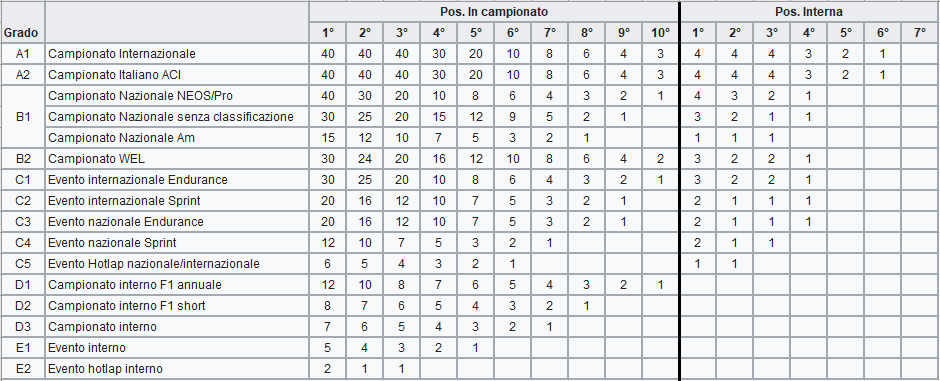 Tale classificazione può dare o negare l’accesso a determinati campionati, che verranno riservati a piloti con un determinato livello di bravura ed esperienza.
